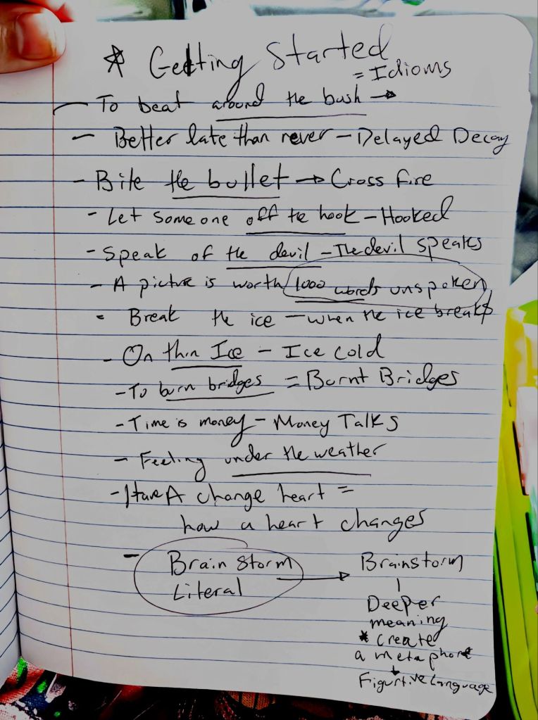 Once you have picked out an idiom, generate a poem title. There’s a lot of different ways to do this. You can take a few words from the phrase/ idiom. You can mix up the words, or you can use the idiom in its entirety. I will be showing you an example of what I did and how I did it.